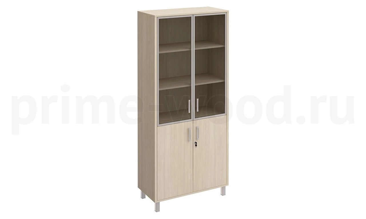 Шкаф для документов двери стеклянные в алюминиевой рамке + ДСП с замком БОРН 90x45x208